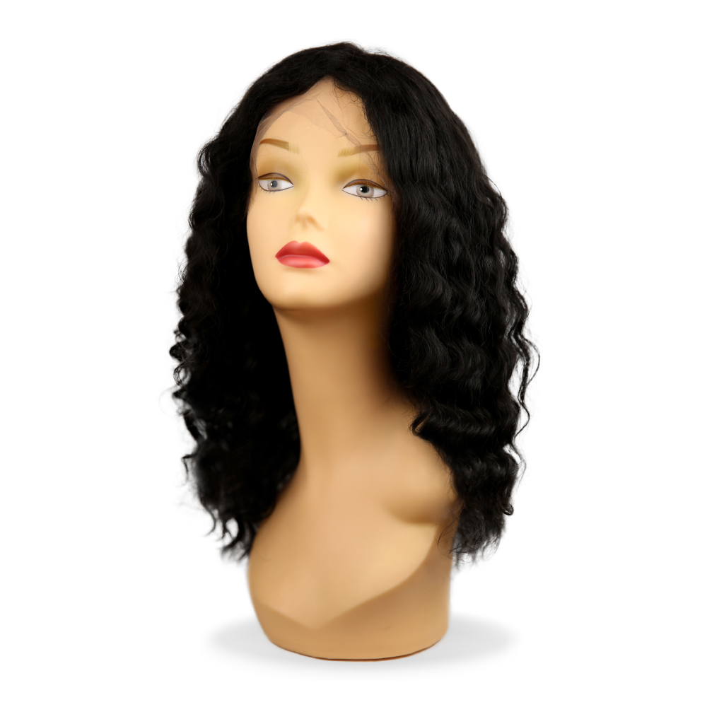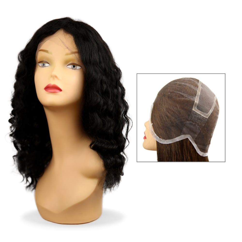 This deep wave full lace wig features a full Swiss lace cap with a stretch band in the crown for a secure snug fit. Utilizes a double knotting technique with baby hair and a natural hairline.